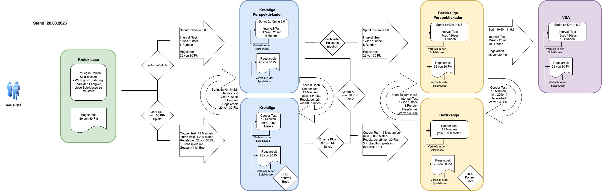 Anbei erhaltet Ihr die Übersicht der zu erfüllenden Qualifikationen - Bitte beschäftigt euch bereits zu Saisonbeginn mit den Prüfungsrichtlinien und findet heraus welche Qualifikationen Ihr zu erfüllen habt. Wir freuen uns auf eure Teilnahme bei unseren angebotenen Lehrgängen, Lauftest, Regeltests etc.